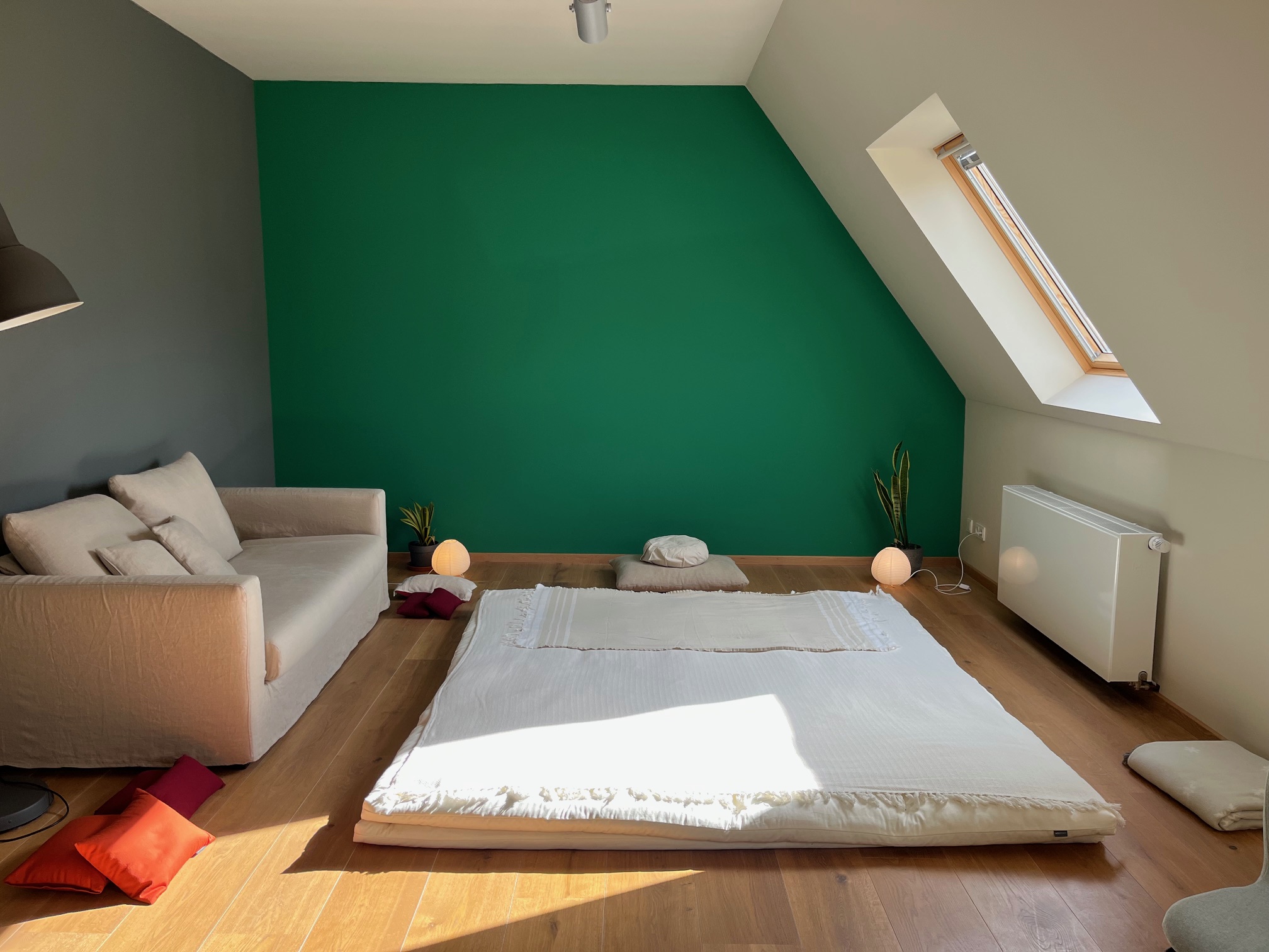 Shiatsu wird auf einem speziellen Futon auf dem Boden praktiziert. Im Zentrum steht die achtsame, in die Tiefe gerichtete Berührung mit der Hand, den Daumen, Ellbogen oder Knien - verbunden mit sanften Dehnungen und Rotationen.